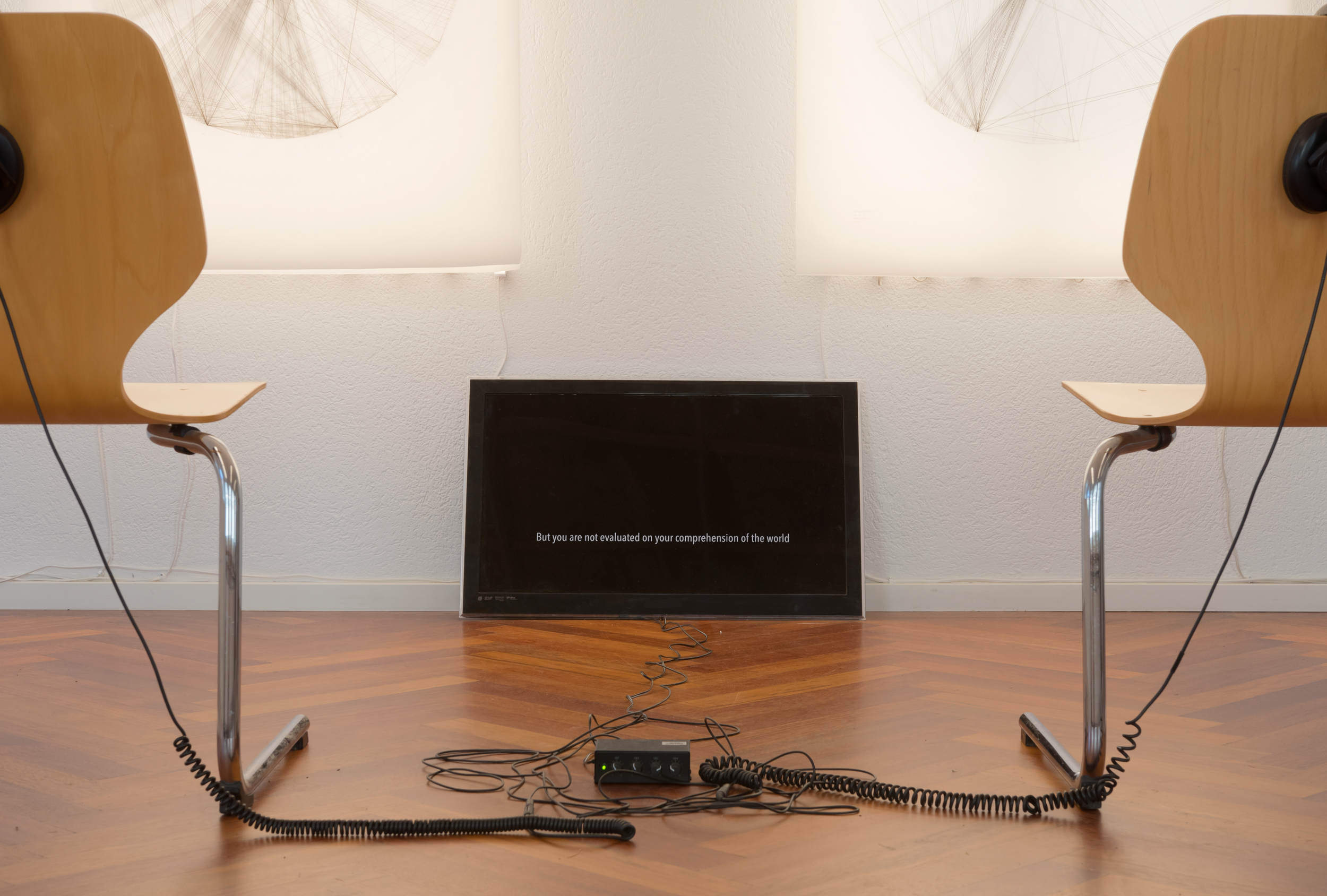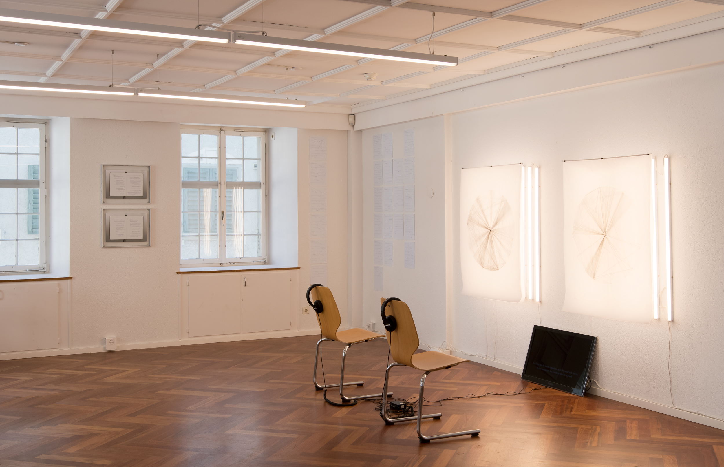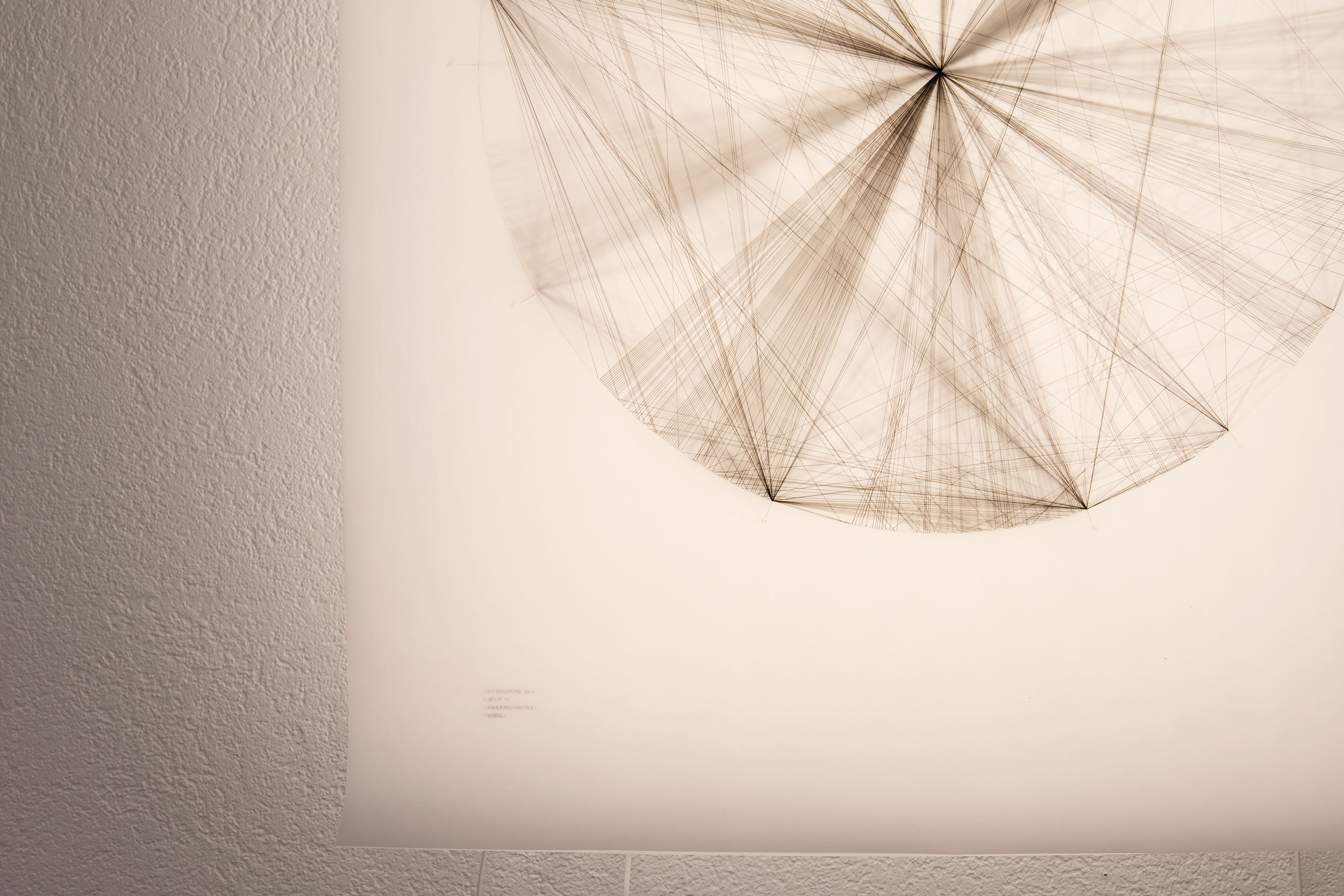 Für Arrows and Other Traps stützt sich Anouk Verviers auf zwei spezifische Gesprächsrunden mit Schüler*innen im Alter von 13 bis 18 Jahren aus Carleton-sur-Mer, Québec Or und Ebnat-Kappel. Aufgenommene Audiofragmente aus diesen Gesprächen werden - mit Genehmigung der Schüler*innen - neu arrangiert und zu einem Dialog verwoben, der die Anliegen, Kritiken, Beobachtungen und den Austausch der Schüler*innen von zwei verschiedenen Orten aus zusammenführt. Die Künstlerin hat ein System zur Abbildung und Analyse jedes Gesprächs entwickelt, das sowohl verbale Beiträge jedes Einzelnen und seiner Adressaten als auch Unterbrechungen, Spannungsmomente, Übersetzungs- oder Dolmetschleistungen berücksichtigt. Sorgfältig in Daten umgeschrieben und dann auf halbtransparentes Papier gemappt, werden die Gespräche übereinander gelegt. Dies bildet eine komprimierte und destillierte Darstellung aller Austausche derselben Gruppe ab, in denen sich Muster oder Tendenzen zeigen könnten.