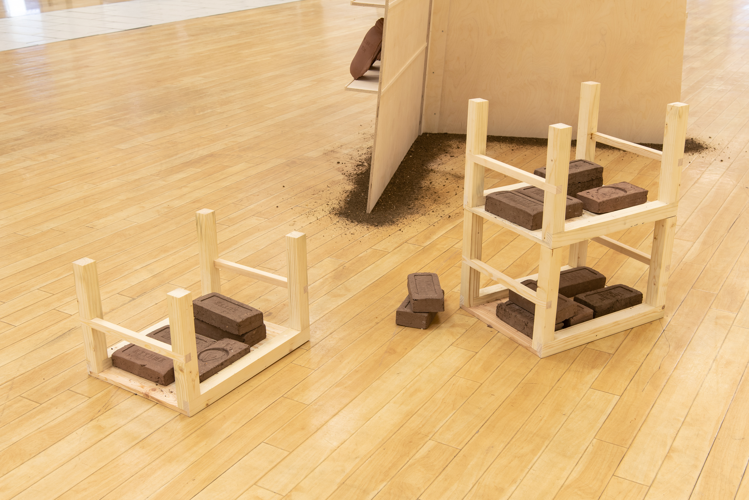 Adobe bricks, mold. Recycled wood. Dimensions variable.