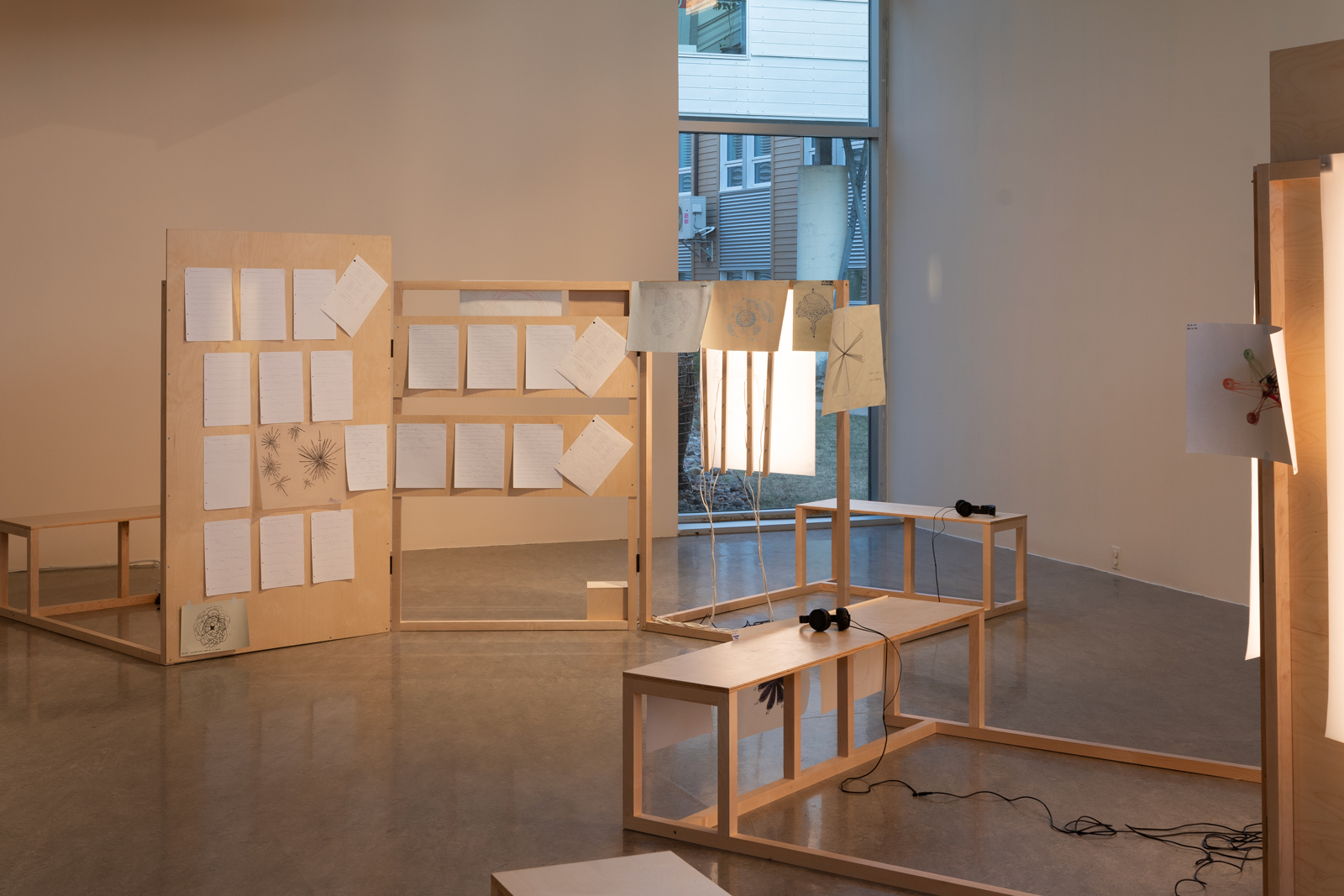 In the exhibition space, five viewing stations, a video work, the artist's notebooks and objects from the project weave together a vibrant, multi-sensory archive of the long-term project. Each of the viewing stations provides an opportunity for privileged contact with one of the groups of students who took part in the project.