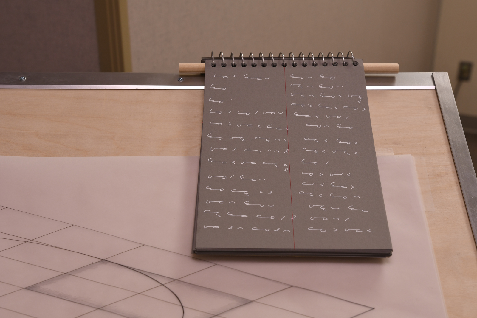 Si deux consonnes forment un angle aigu, il suffit de l’arrondir légèrement follows on from the artist's research into the education system since 2018. (...) Anouk Verviers is interested in the obsolete art of shorthand as a starting point to explore the zones of passivity and action that mark our relationships with the complex institutions surrounding us. As a starting point, the artist intervenes in the University, attending two series of meetings: those of the executives of the Vice-Rectorate for Research, Creation, Partnerships and Internationalisation of the UQO (VRRCPI), and those of the UQO Gallery team.