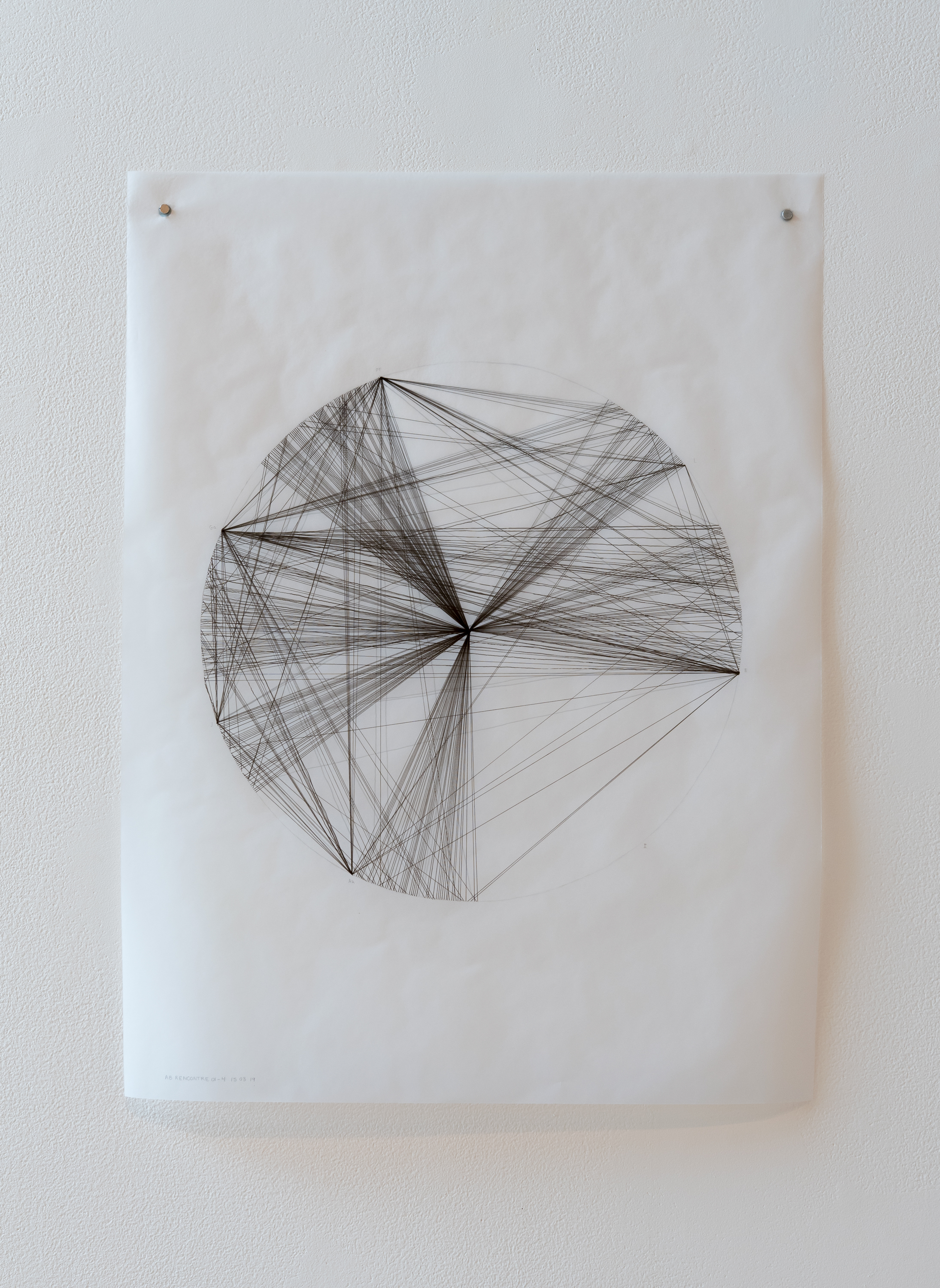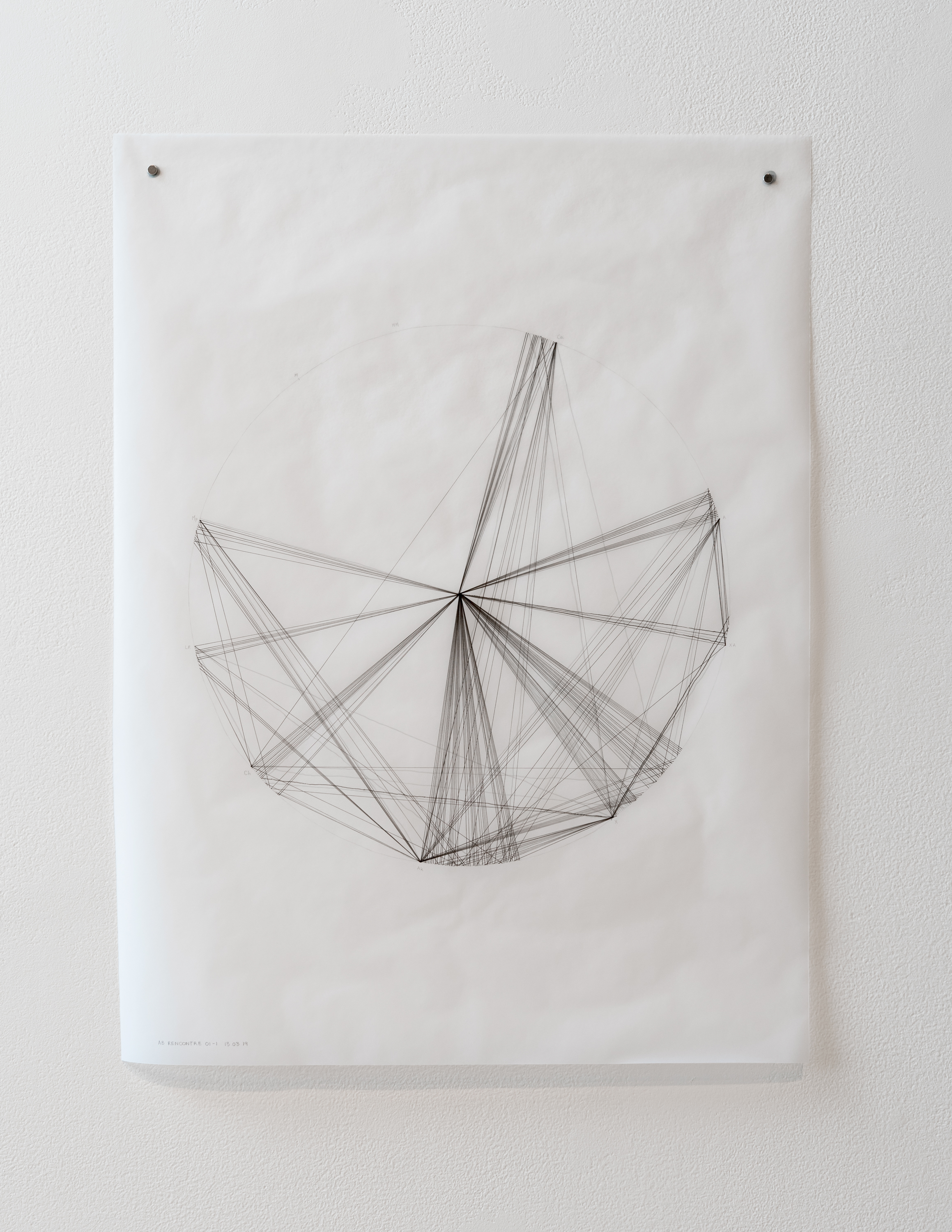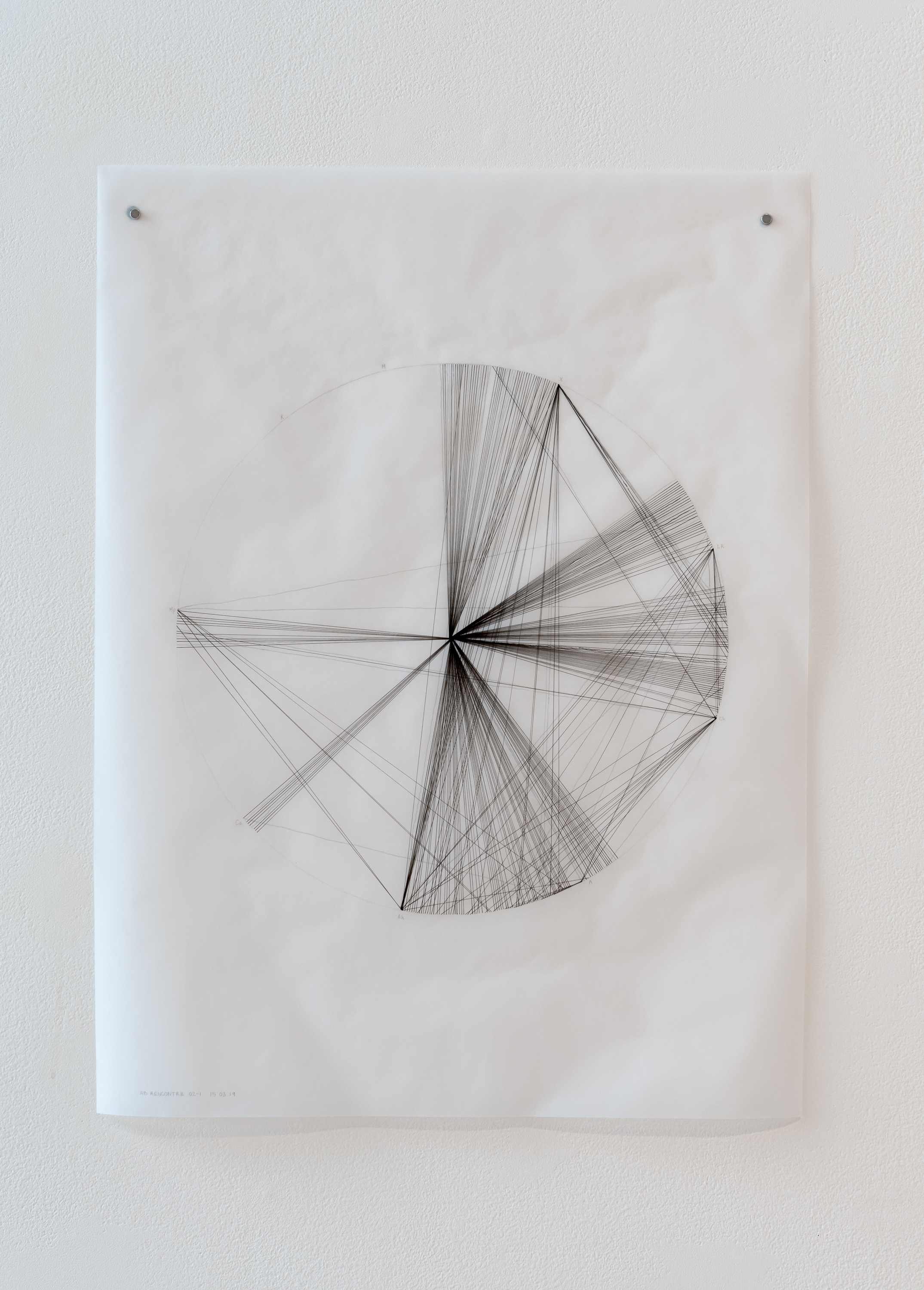 Chaque dessin est réalisé à l’aide de données générées manuellement à partir des enregistrements de conversations issues de mes différents projets d’art collaboratifs et relationnels. Lors de l’écoute, chaque intervention est codifiée sous forme de vecteur (flèche), avant d’être transformée en ligne sur le dessin final.