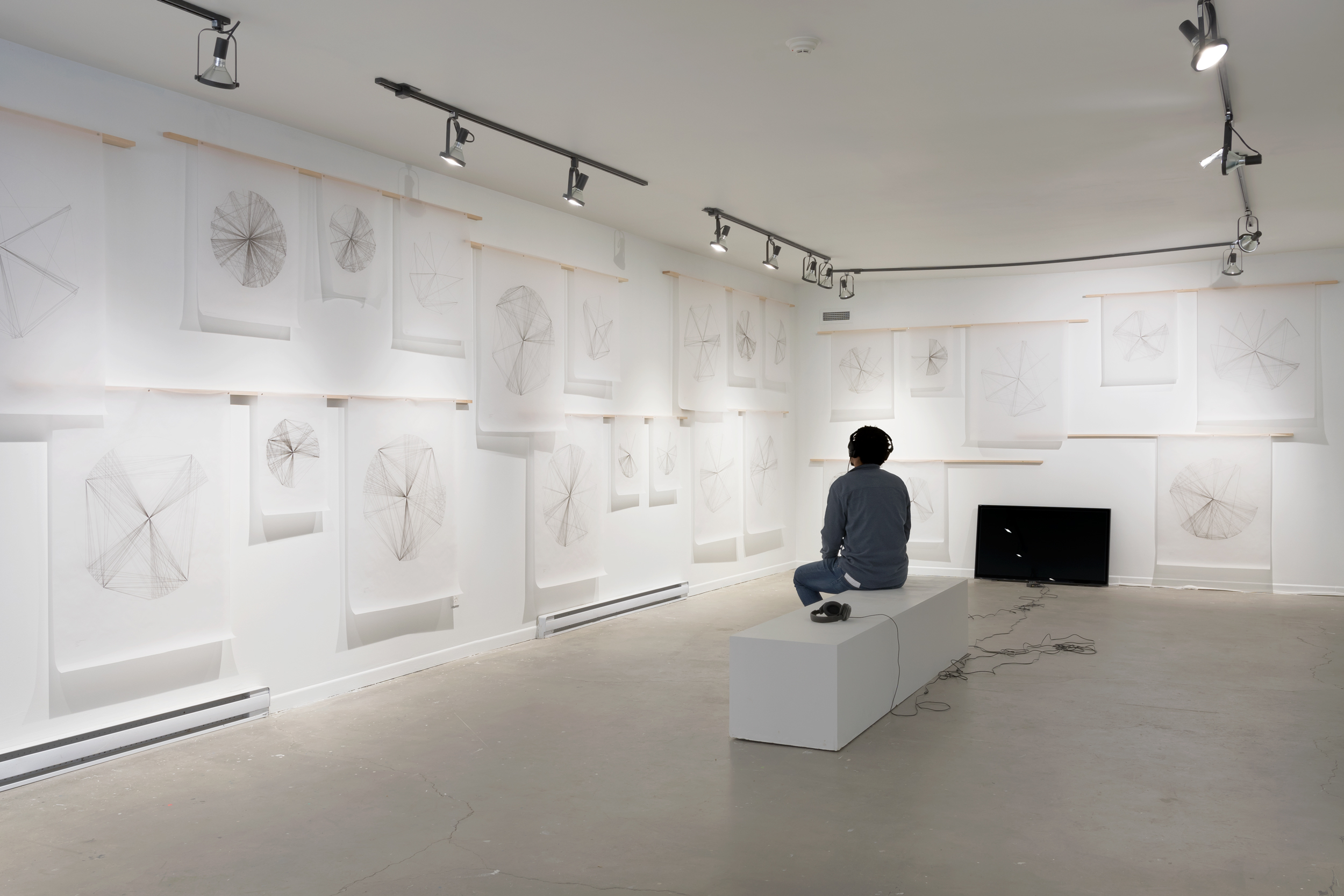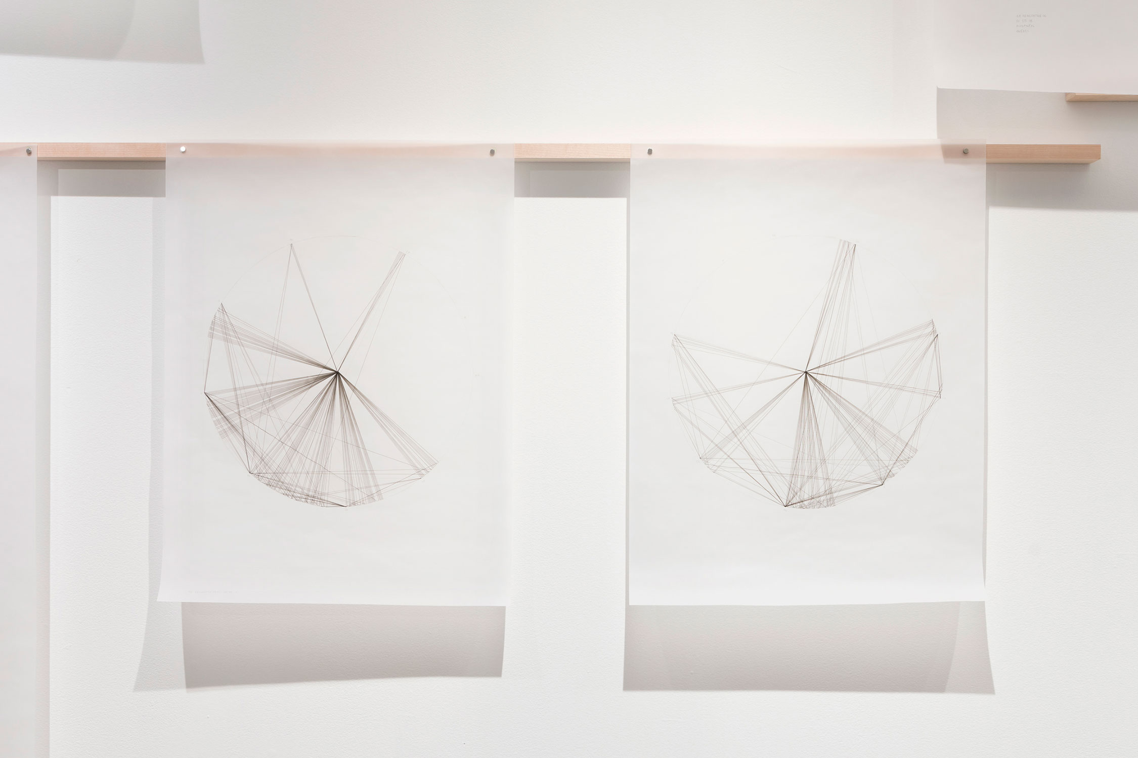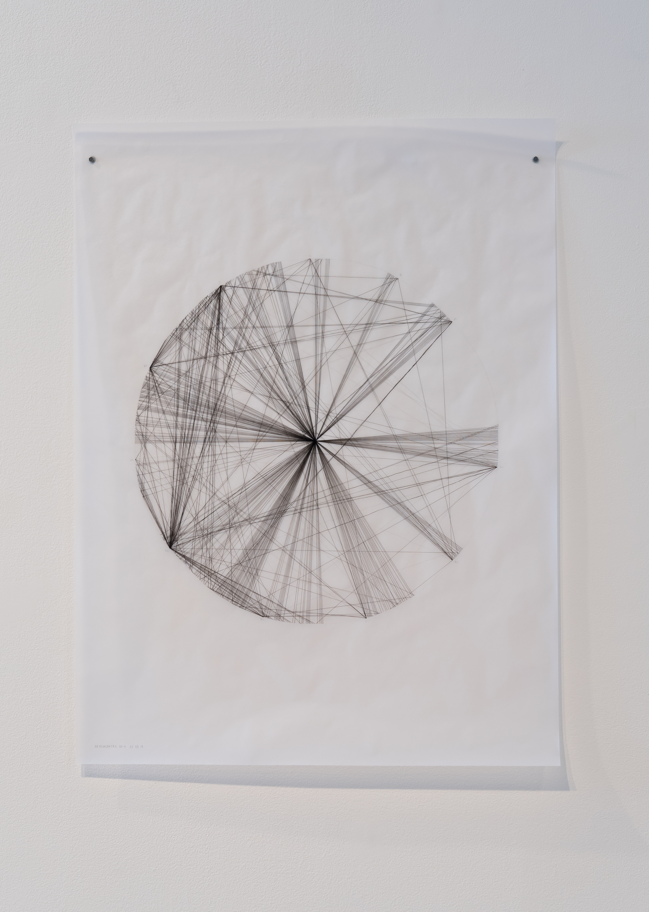 Chaque dessin est réalisé à l’aide de données générées manuellement à partir des enregistrements de conversations issues de mes différents projets d’art collaboratifs et relationnels. Lors de l’écoute, chaque intervention est codifiée sous forme de vecteur (flèche), avant d’être transformée en ligne sur le dessin final.