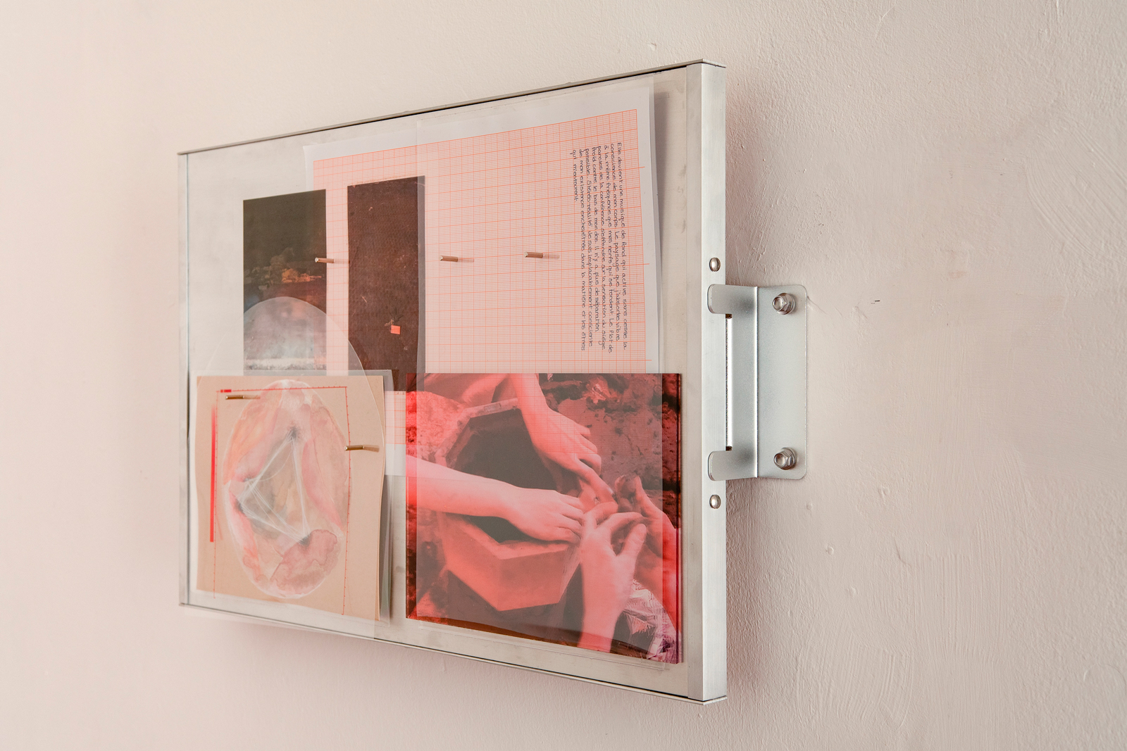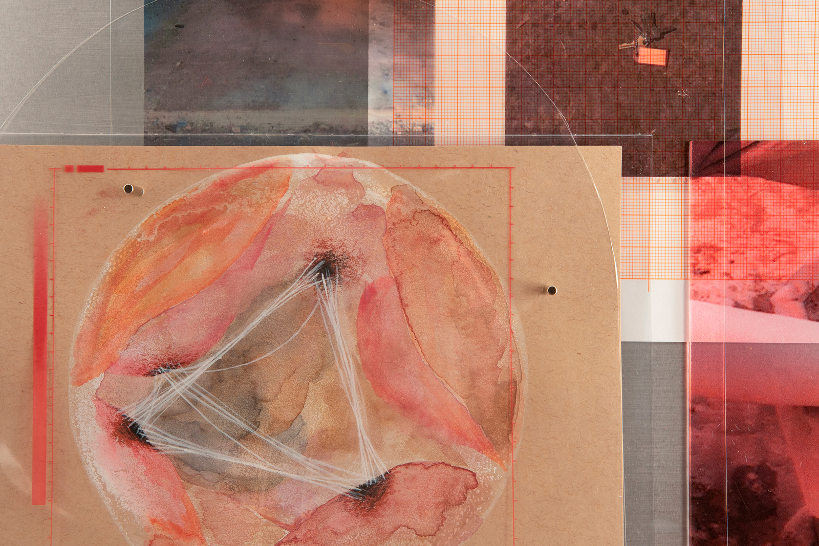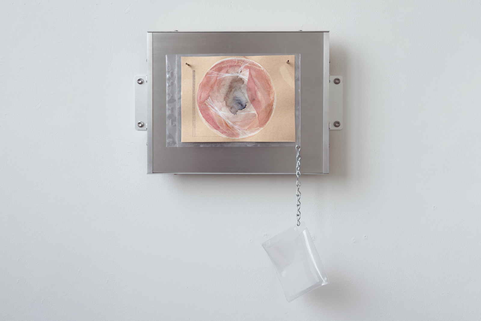 Aluminium, watercolour on paper, ink on paper, uv print on acrylic and acetate, archival sleeves, solar panel mounts, chain, medical wax, magnets