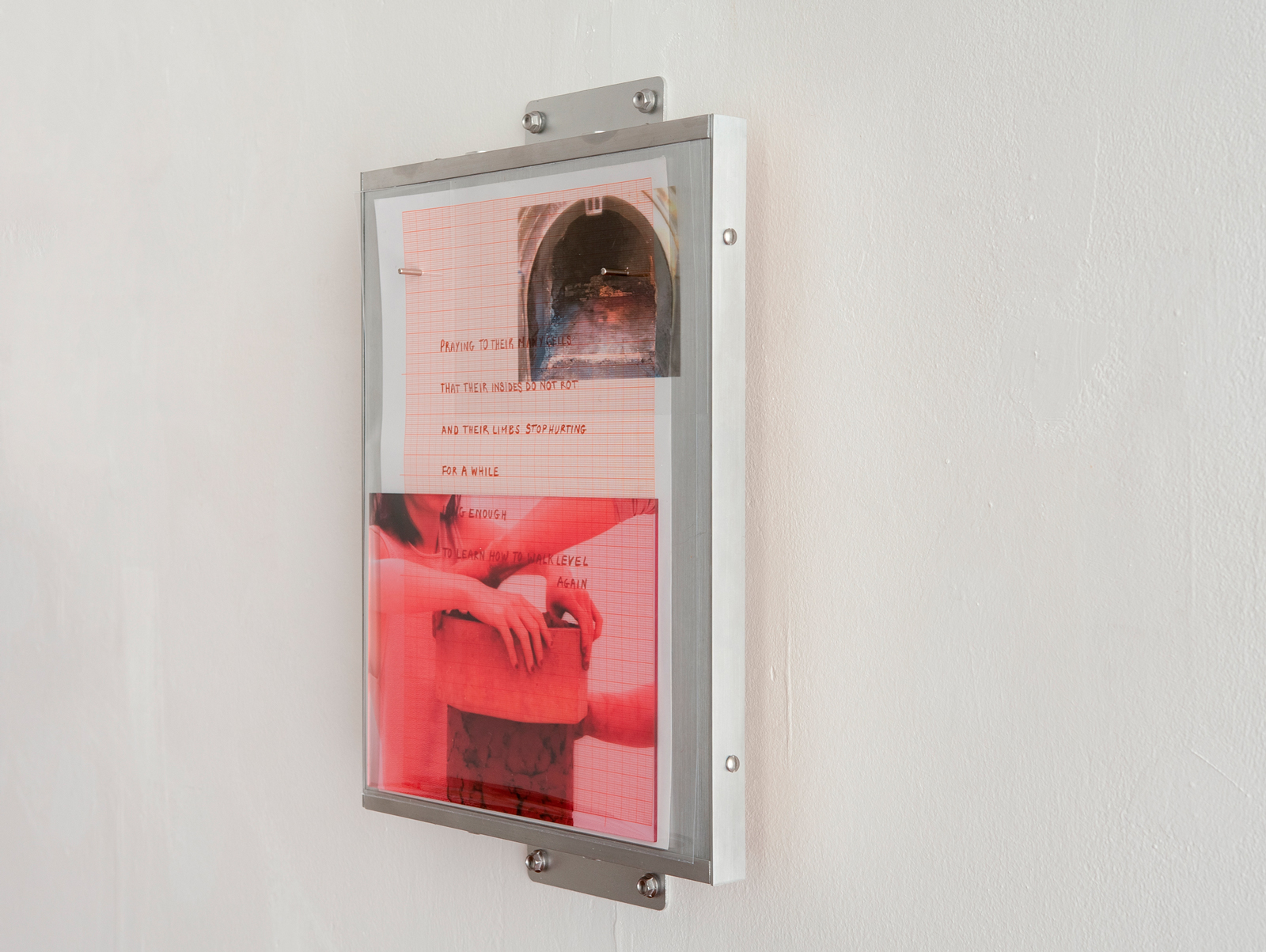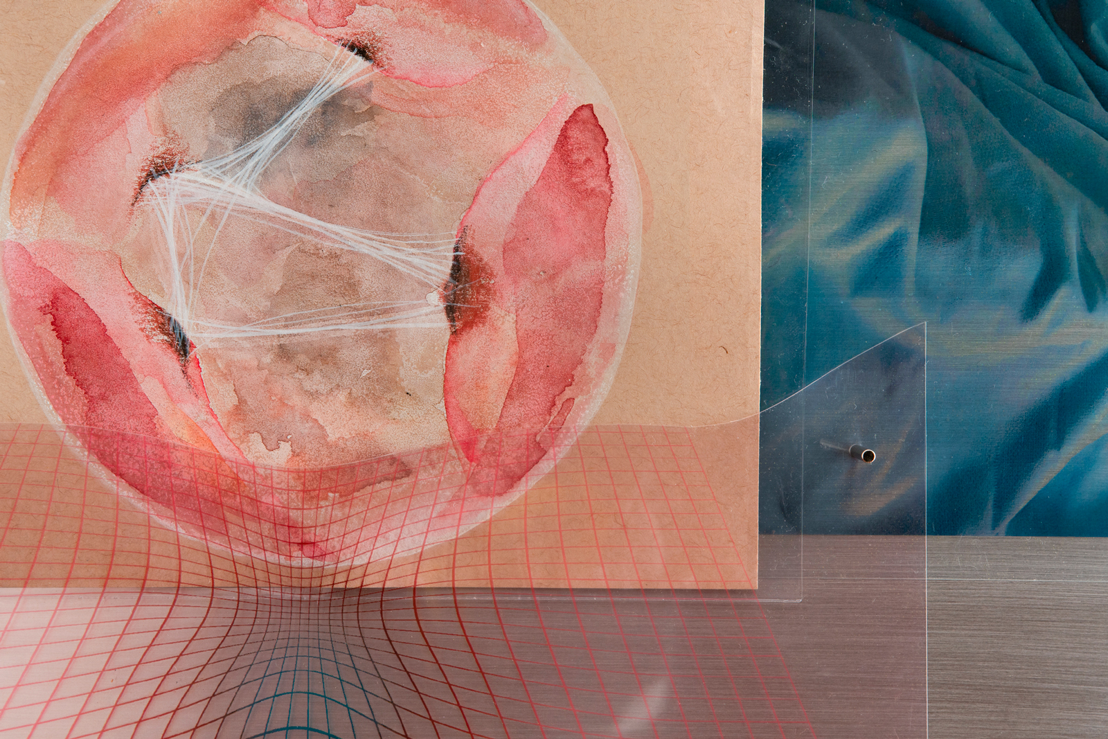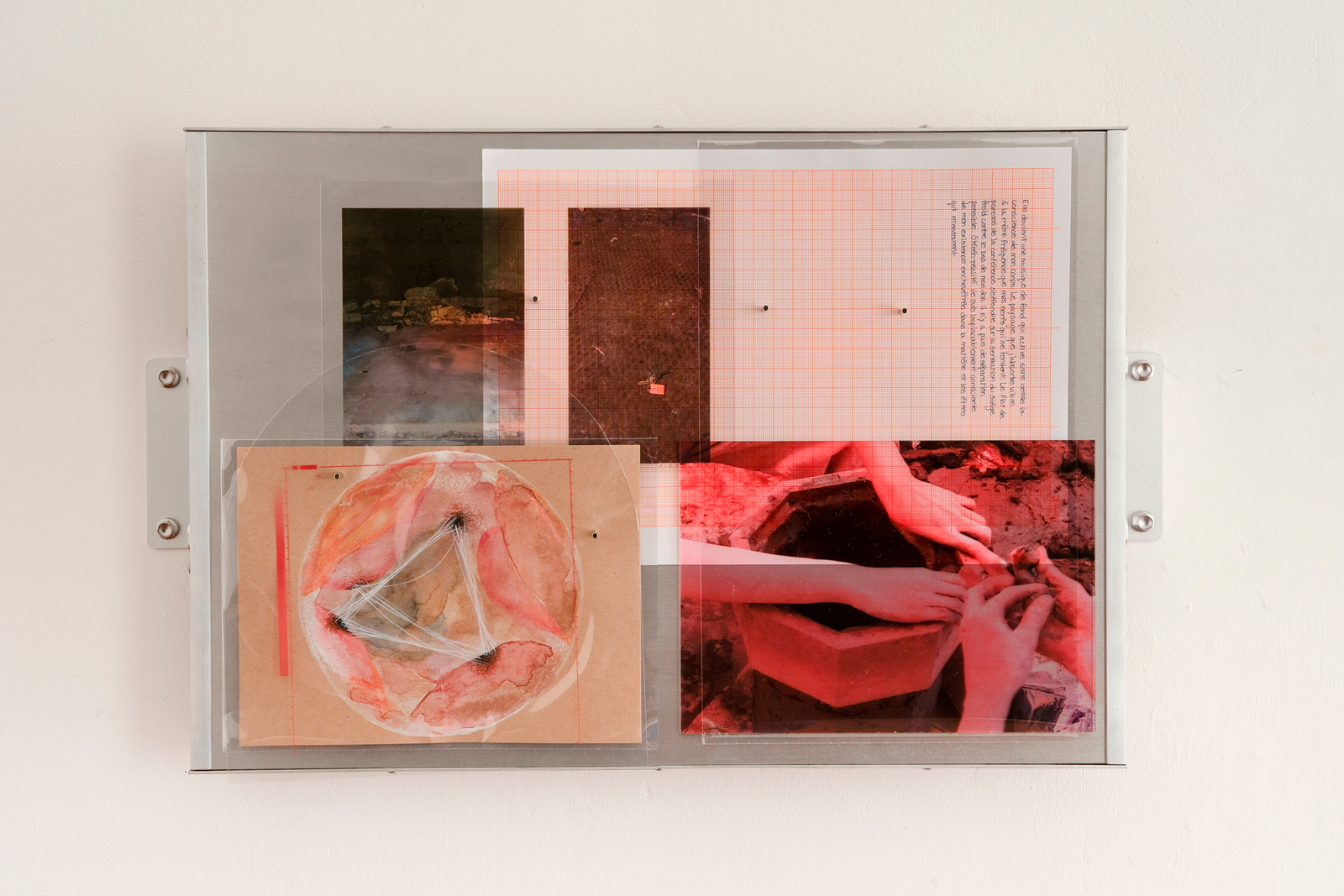 Aluminium, watercolour on paper, ink on paper, uv print on acrylic and acetate, archival sleeves, solar panel mounts, chain, medical wax, magnets